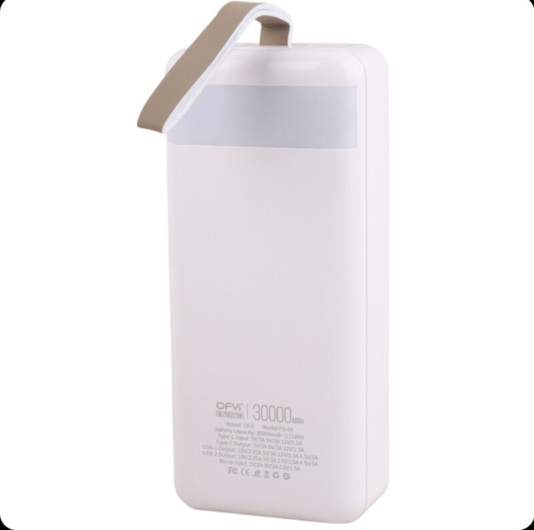 پاوربانک اوفی مدل Ofyi PB-09 30000 دارای ظرفیت 3000 میلی آمپر ساعت به همراه پشتیبانی از فناوریهای شارژ سریع QC3.0 و Power Delivery در کنار توان 22.5 وات با سرعت مطلوبی تلفن همراه شما را شارژ میکند. از طرفی برخورداری از تکنولوژی شارژ ایمن (MultiProtect) از دستگاه شما در برابر نوسانات و لتاژ و اتصالات کوتاه محافظت میکند. این محصول دارای دو پورت ورودی یک عدد میکرو USB و دیگری تایپ سی میباشد که میتوانید آن را به وسیله این پورت ها شارژ کنید.