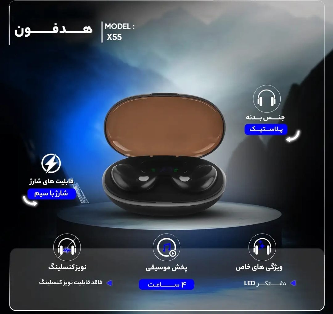 بلوتوثی X55 با طراحی سبک امکانات پایه و باتری مناسب، انتخابی مقرون به صرفه برای کاربران عمومی است که به دنبال راحتی و کیفیت صدای استاندارد در زندگی روزمره هستند.