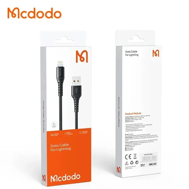 کابل فست شارژ یواسبی به لایتنینگ 1 متری مک دودو