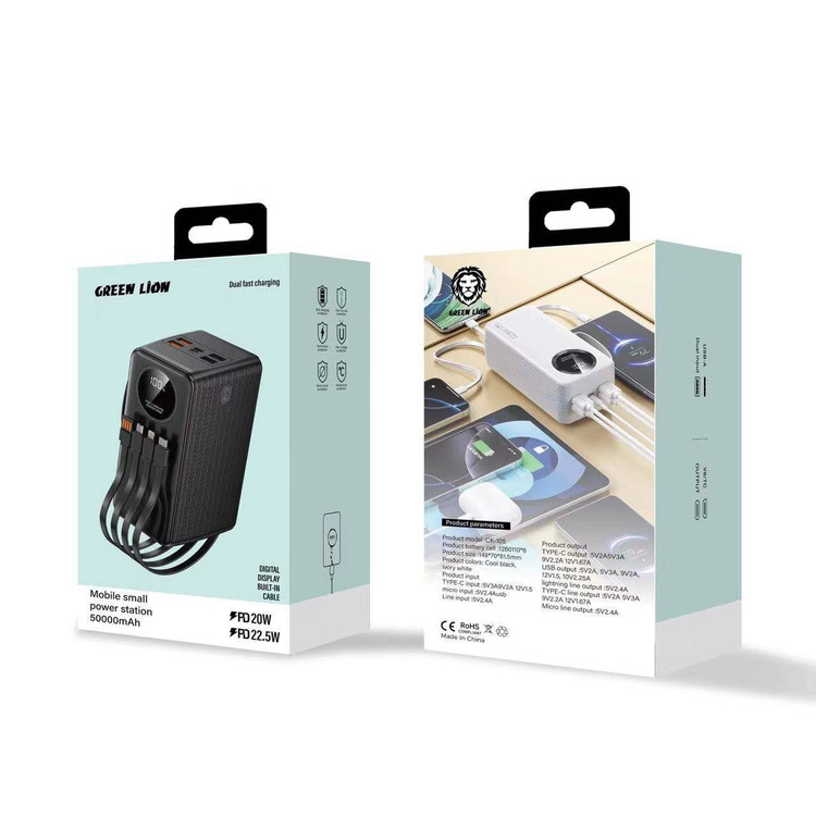 پاوربانک GREEN LION مدل CK-105 یک پاوربانک اورجینال و بسیار قدرتمند با ظرفیت عظیم 50000 میلیآمپر ساعت است که برای کاربران حرفهای، استفادههای سنگین و سفرهای طولانی طراحی شده است. این مدل انتخابی ایدهآل برای افرادی است که نیاز به شارژ مداوم چندین دستگاه دیجیتال در طول روز دارند.